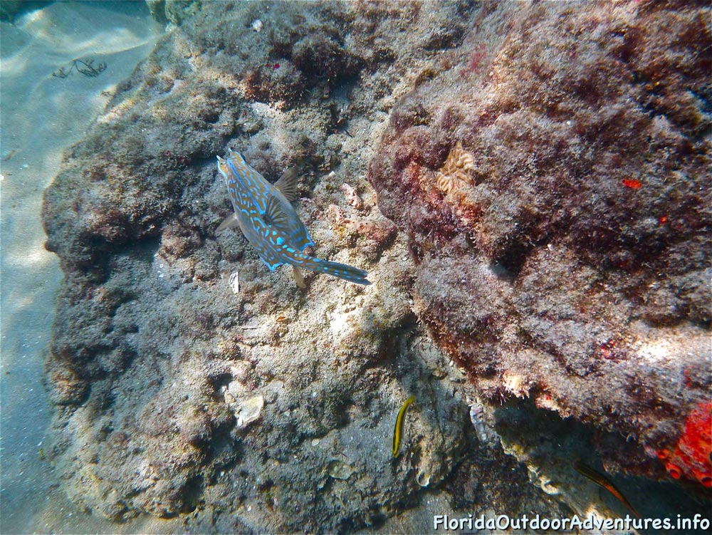 Critters spotted this snorkel:Snails, Puffers, Trunkfish, schools of assorted small fish, sea fans, colorful soft and hard corals, other small critters amongst the rocks.