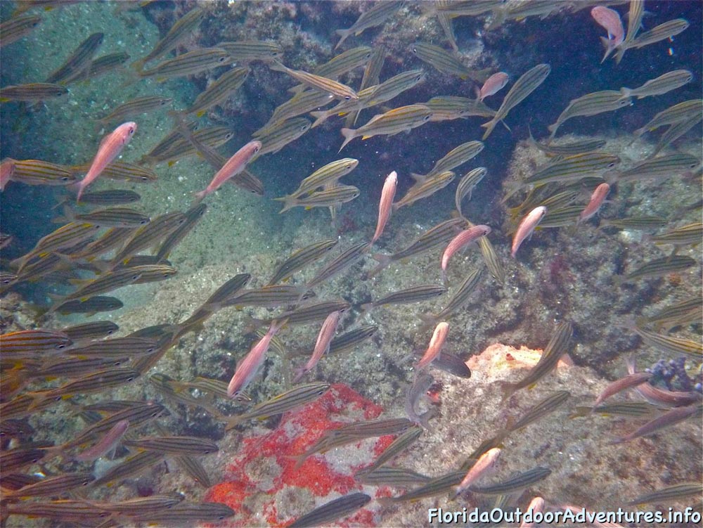 Description: This reef is in about 6-12 feet of water and is a rocky artificial reef that is old enough to have a well established population of fish and invertebrates with some scattered corrals.